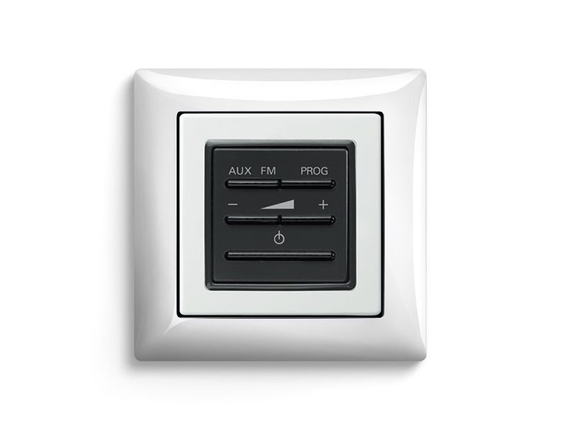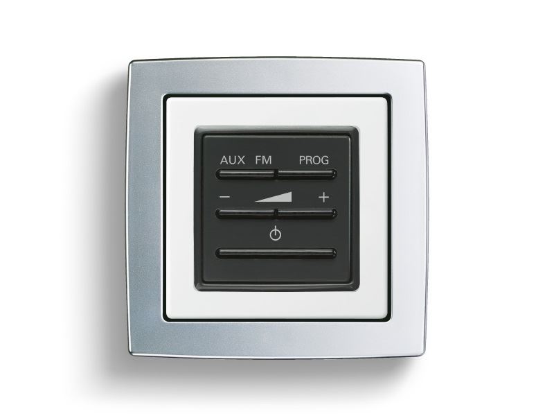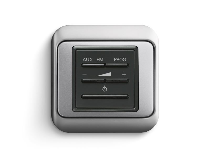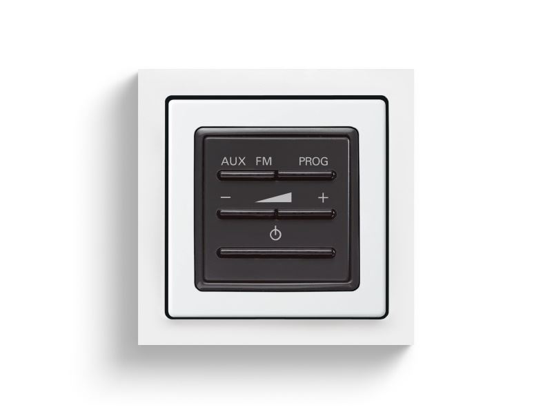 Dieser Unterputz-Systemverstärker-Einsatz wird ausschließlich über Tasten gesteuert und ist besonders leicht zu bedienen. Mit ihm kann man Musik hören, individuell die Lautstärke regulieren und zwischen zwei Audiokanälen umschalten (Radio oder externe Musikquelle). Zusätzlich ist die Weiterschaltung des zentralen Radioprogramms möglich. Der Busch-AudioWorld -Verstärker-Einsatz ohne Intercom-Funktion harmoniert perfekt mit dem Busch-AudioWorld -Lautsprecher-Einsatz für Verstärker-Einsatz und bietet eine automatische Klangkorrektur.